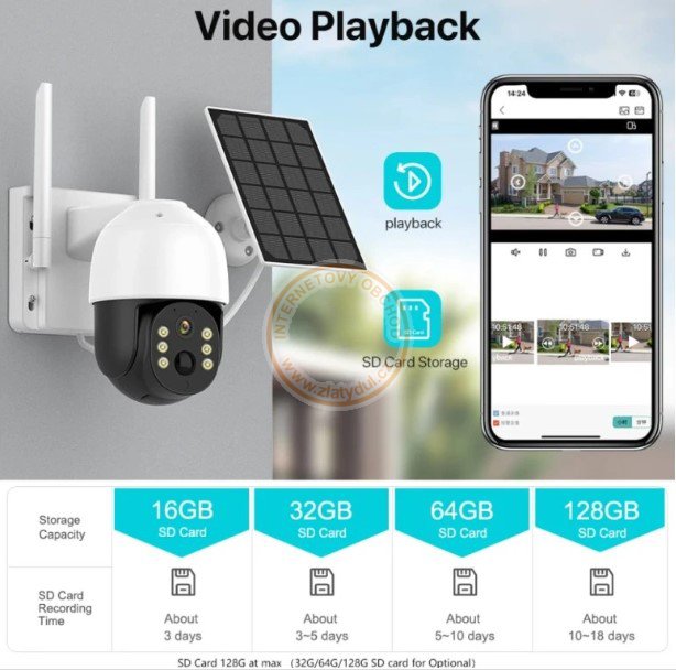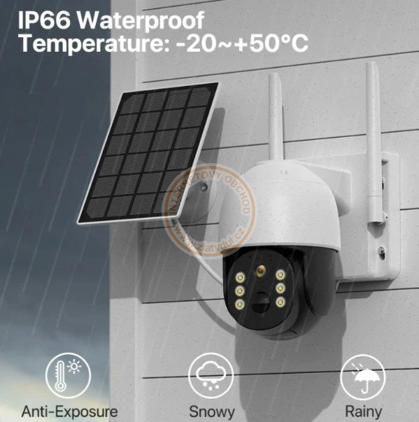 Solární napájení kamery je navrženo tak, aby efektivně akumulovalo energii během slunečných dnů a kamera tuto nahromaděnou energii využívala v oblačném počasí či ve večerních hodinách. Díky certifikaci IP65 je vhodná pro použití i za deštivého počasí.