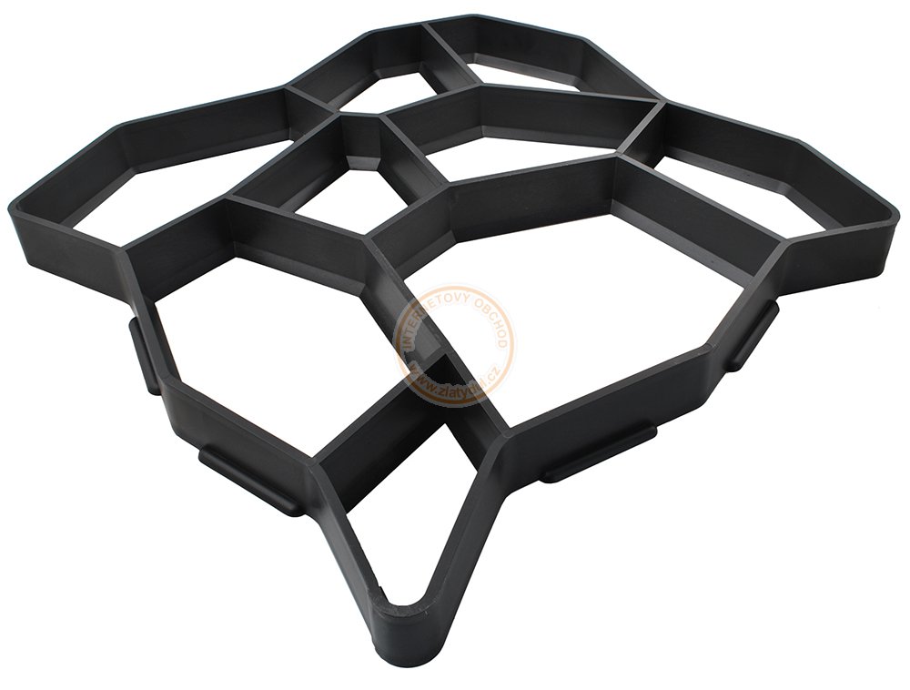 Nepravidelný vzor přírodního kamene vám umožní snadné pokládání chodníků libovolnými směry. Díky speciálnímu složení plastů, ze kterých je forma vyrobena, se s ní pracuje velice snadno a beton se k formě nepřilepuje.