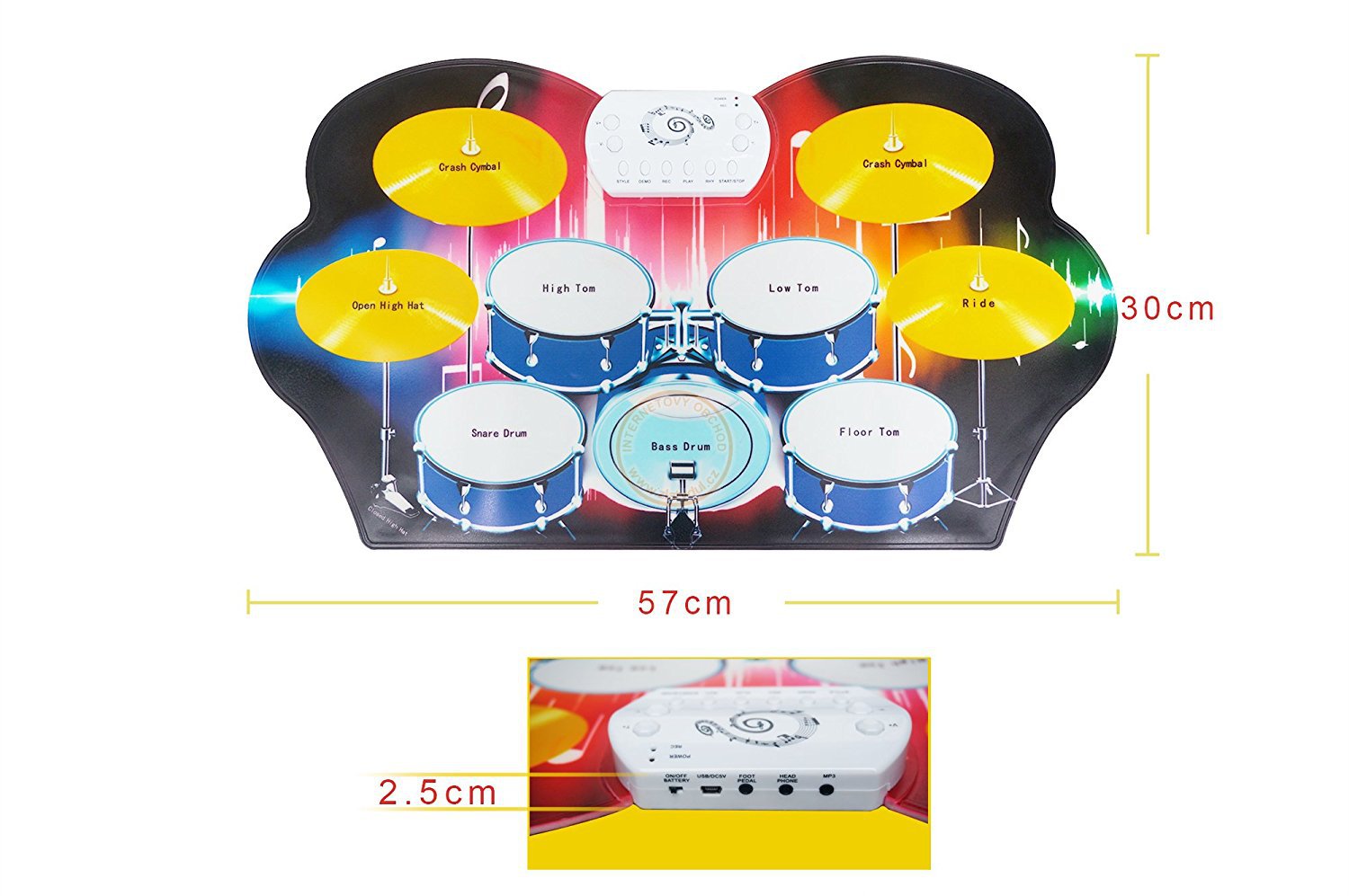 Udělejte vašemu zlatíčku radost jeho vlastní bicí soupravou v podobě velké hudební podložky. Taková hračka je nejenže zárukou dlouhých hodin zábavy, ale také pomáhá vyvíjet sluch, hudební a rytmické schopnosti. Mimo to podporuje představivost, koncentraci a koordinaci těch nejmenších. Dítě se tak zábavným způsobem naučí rozpoznávat zvuky a rozšiřovat své rytmické schopnosti.