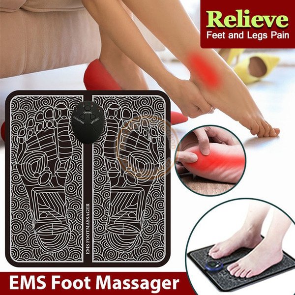 Podložka EMS na chodidla. Protiskluzová gumová podložka pro uvolnění svalů. Stačí se usadit položit nohy a relaxovat. Ovládání pomocí ovladače, který se připne pomocí druků k podložce.