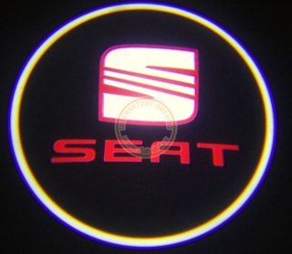 Svítící LED logo projektor Seat z malých projektorů, které zobrazí znak automobilky z otevřených dveří